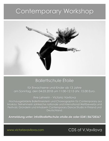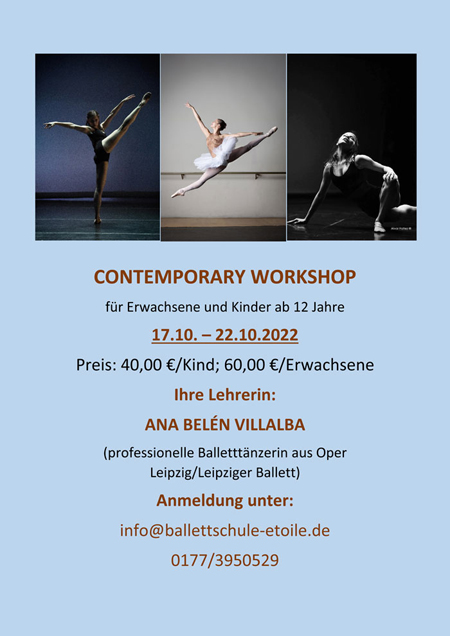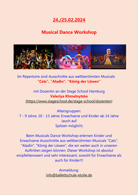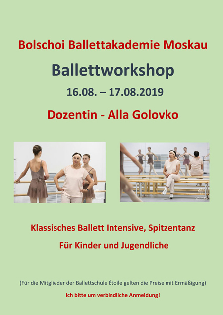 Workshops Anmeldung unter info@ballettschule-etoile.de